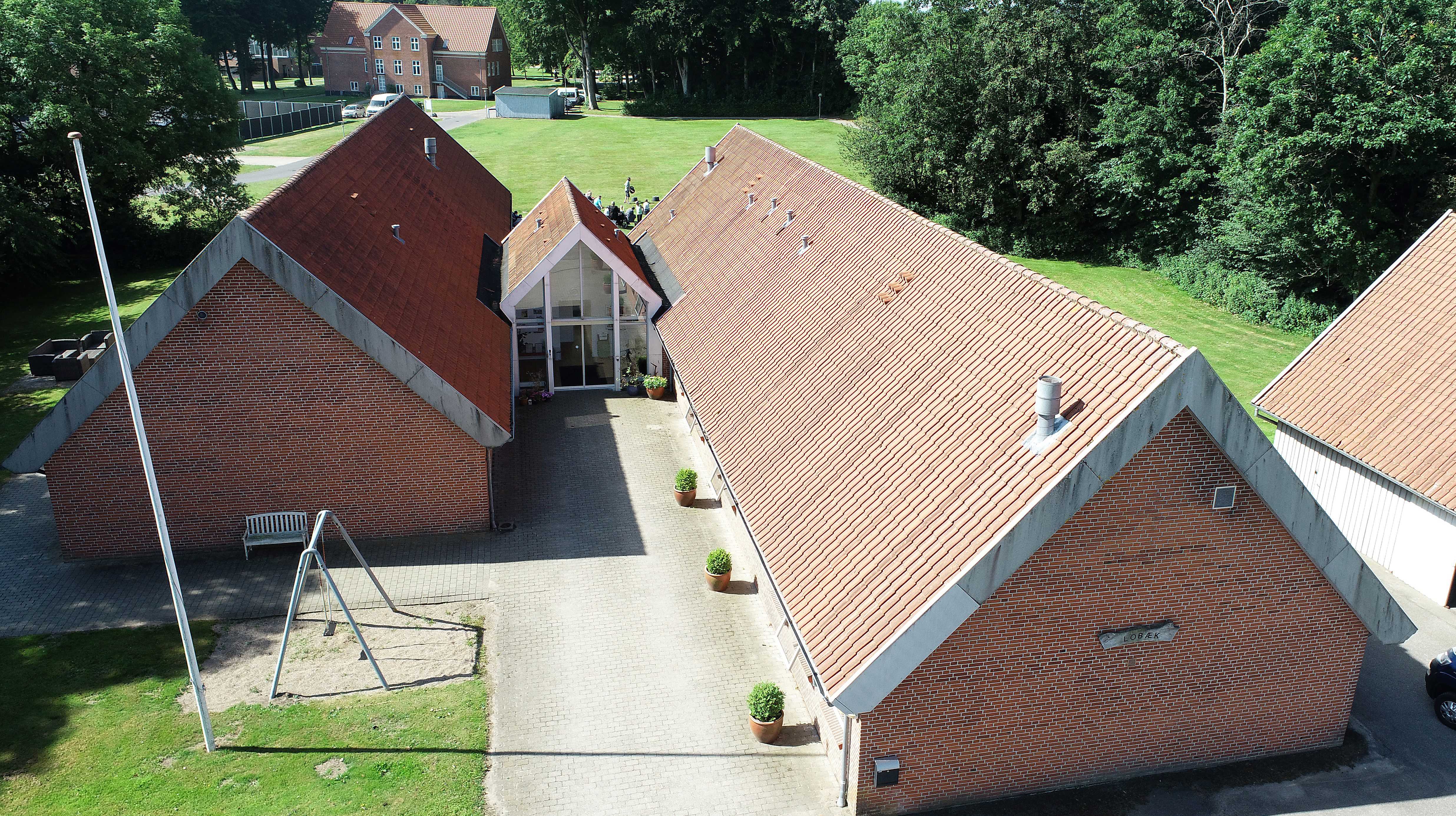 Lobæk holder til i en stor lys og venlig bygning, der er hoved renoveret i 2021. Huset er bygget til beskæftigelses brug, hvilket vil sige, at der er 4 store og lyse grupperum. Derudover er der et stort, åbent og dejligt køkken, som også bruges til fælles aktiviteter, som musik, biograf og rytmik. Huset har også en mindre udestue, som benyttes til sanseaktiviteter og pædagogisk massage. Der forefindes lifte i de fleste rum i huset samt på badeværelser. På den ene side af huset er der en stor terrasse med markiser over, som kan benyttes i både regn og sol. Her laves der bål, bålmad, spilles musik eller frokosten nydes ude. Derudover er der et stort gyngestativ, som benyttes flittigt.